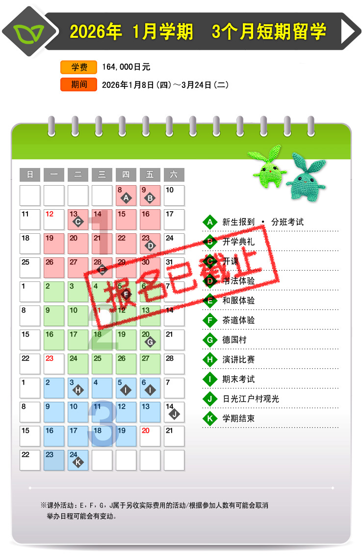 2026年1月 3个月短期留学招生