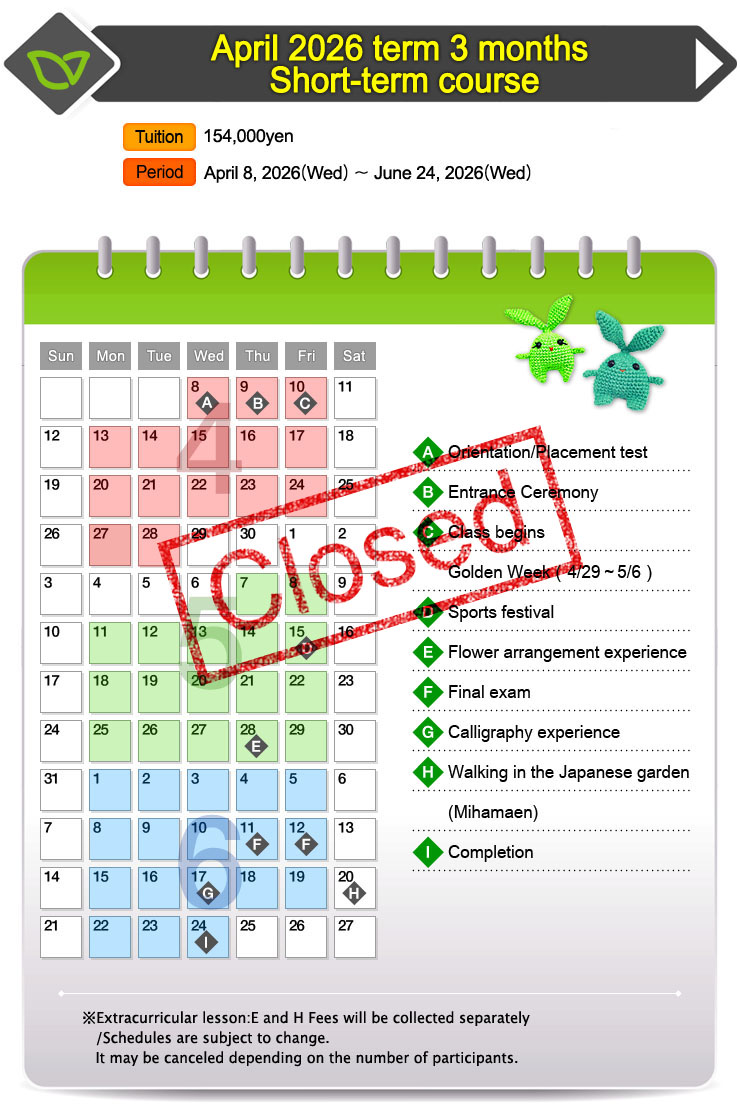Recruitment of 3-month short-term students for April 2026