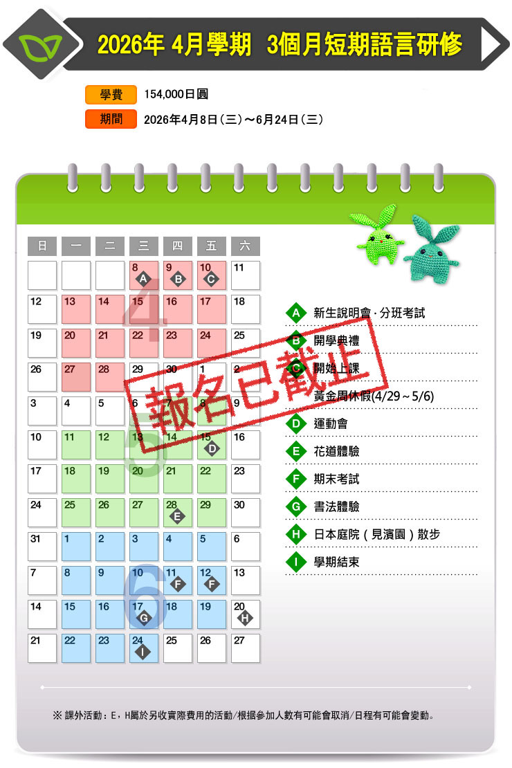 2026年4月短期生招生