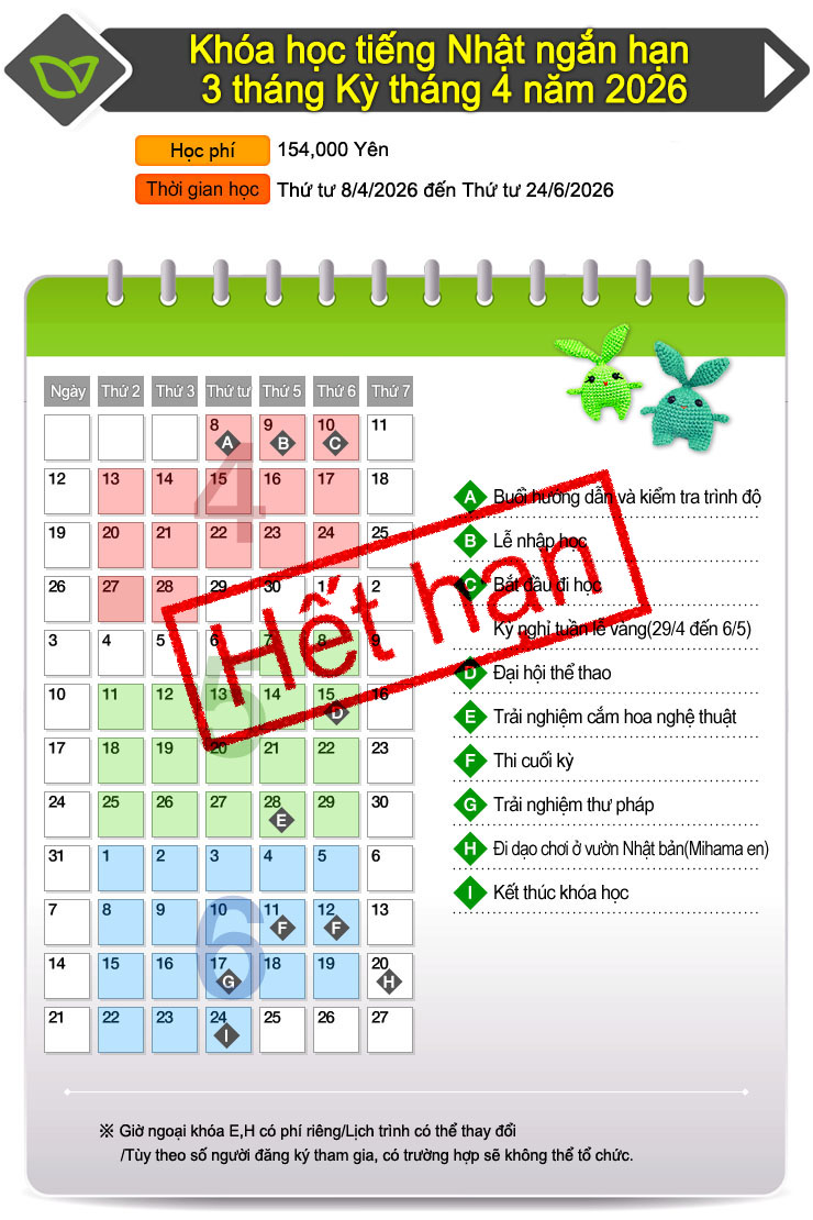 Tuyển sinh Khóa học tiếng Nhật ngắn hạn 3 tháng Kỳ tháng 4 năm 2026